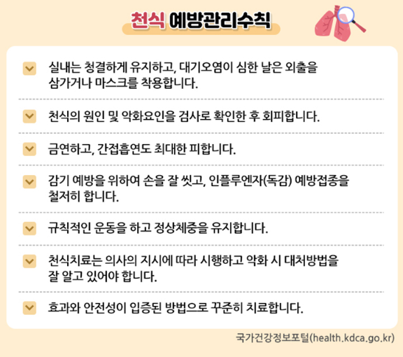 | 3. 금연 및 간접흡연 회피 | 흡연은 천식 악화 주범 |